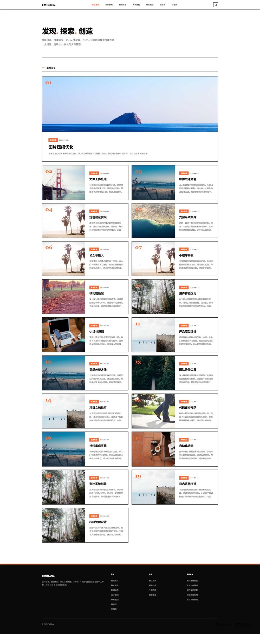 杂志排版风格主题,粗边框美学、全宽布局、文章编号系统,专注内容阅读体验