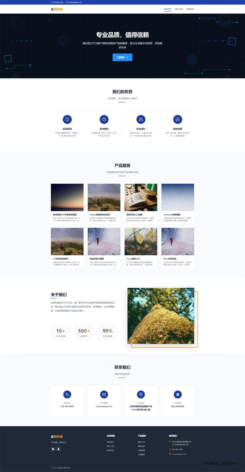 现代简约企业官网主题,适合中小企业展示公司形象、产品服务,大气专业的设计风格